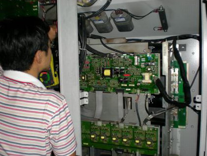 首先打開(kāi)頂部風(fēng)機(jī)蓋板,取出頂部4個(gè)散熱風(fēng)機(jī),露出散熱片,用空壓氣體清理散片。將散熱片清理干凈后,更換兩個(gè)損壞的風(fēng)機(jī) 同時(shí)將剩下的兩個(gè)散熱風(fēng)機(jī)也清理干凈。安裝好風(fēng)機(jī)后,蓋好風(fēng)機(jī)蓋板。將好的SOFTCHARGE CARD 、GATEDRIVE CARD安裝好,換上新的快速熔斷器和POWER CARD。最后將CONTROL CARD裝好。變頻器安裝完畢。再次檢查變頻器的各個(gè)部分器件好壞,檢查變頻器的外圍線路,確認(rèn)滿足變頻器送電條件。給變頻器送電,發(fā)現(xiàn)變頻器散熱風(fēng)機(jī)運(yùn)行正常,開(kāi)機(jī)輸出電壓平衡,帶負(fù)載運(yùn)行正常。變頻器成功修復(fù)。