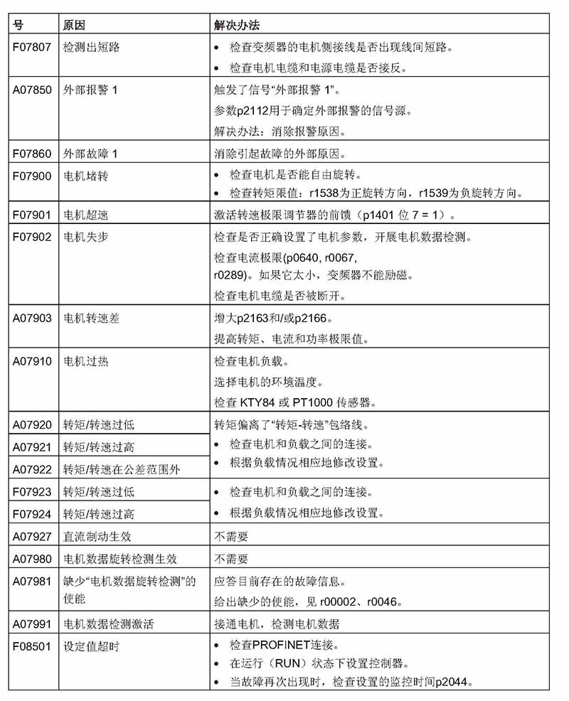 在使用過程中,西門子S120、G120出現故障,可以通過以下內容查詢故障原因并采取維修對策。